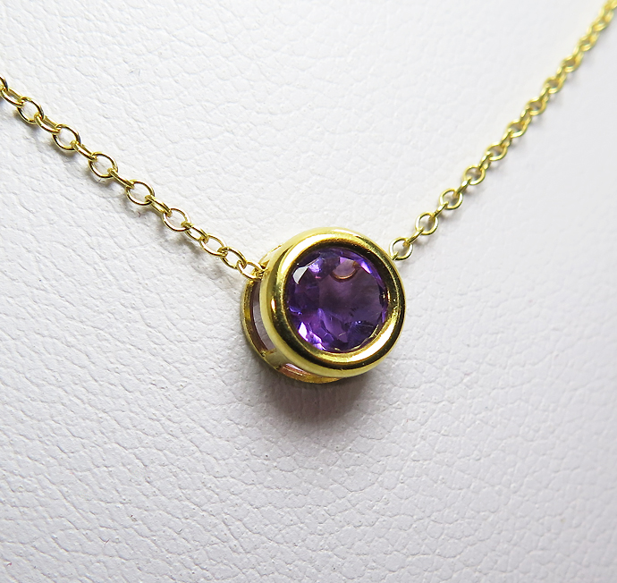 アメジストネックレス 天然石 14kgf ベゼル 6mm ゴールドフィルド 1本です。