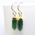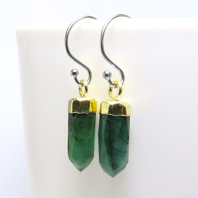 エメラルドピアス 天然石16×5mm ポイント ドロップ・フック ゴールド コンビ ミックス シルバーSV925です。