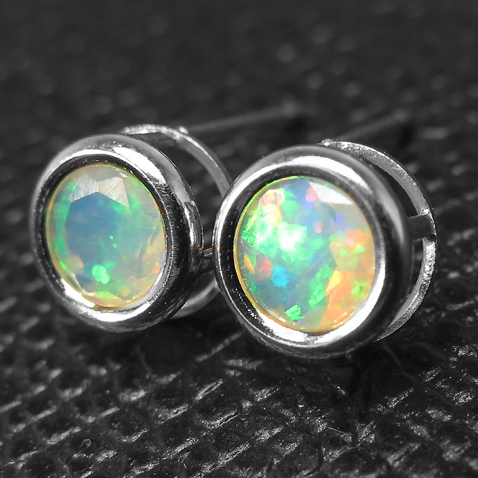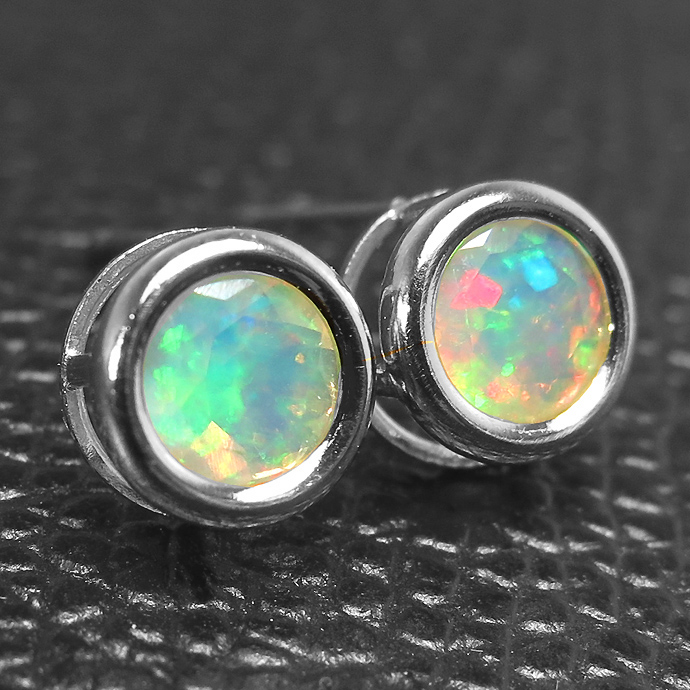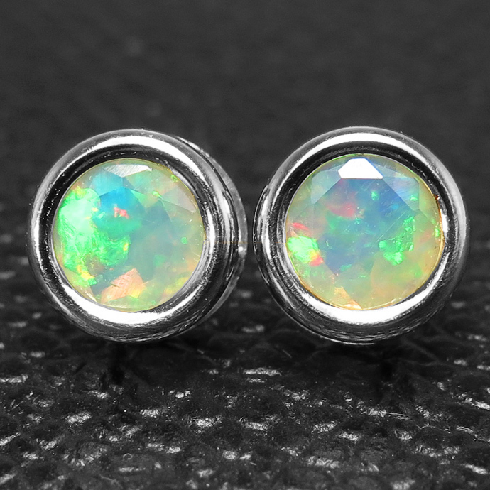 ・天然石:エチオピアンオパール(6mm) ・ポストの太さ:約0.7mm ・刻印:925