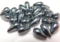 純国産ガラスパールビーズ バロックパール ドロップ(雫、ツユ)ミガキ 8×16mm ブラックピーコック約38センチ(5連)です。