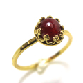 ルビー 指輪 リング 天然石 鉛ガラス充填 <7月誕生石>ハンマード ラウンド6mm 真鍮ブラス・ゴールドカラー/1個です。