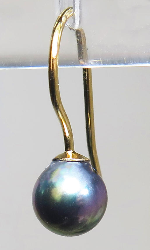 貝パール ピアス ミガキ・国産(ブラックピーコック系)(ラウンド6mm)14KGFフックピアス「ゴールドフィルド」(10ペア)です。
