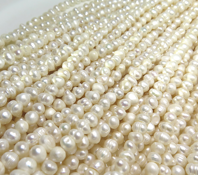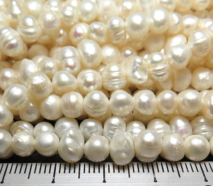 真珠 パール 淡水 バロック~ポテト(ホワイト系)5~6mm玉 約36センチ(1連) です。