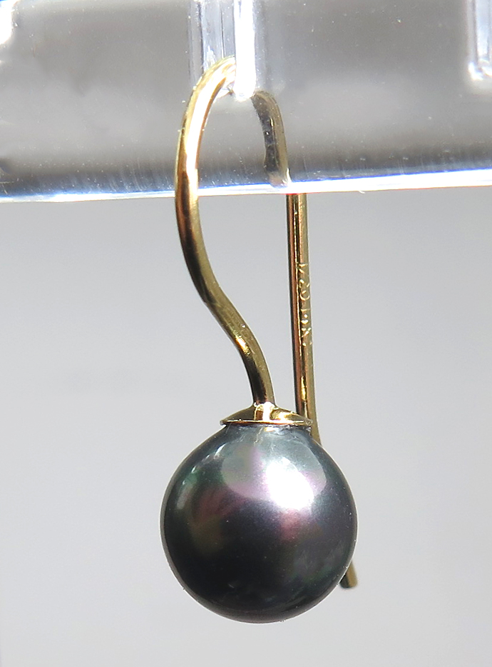 貝パール ピアス ミガキ・国産(ブラック系)(ラウンド6mm)14KGFフックピアス「ゴールドフィルド」(1個/片耳)です。