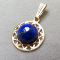 ゴールドフィルド・チャーム(ペンダントトップ・バチカン付)/天然石チャームラピス<12月誕生石>(カボション8mm)「14kgf」(5個) です。
