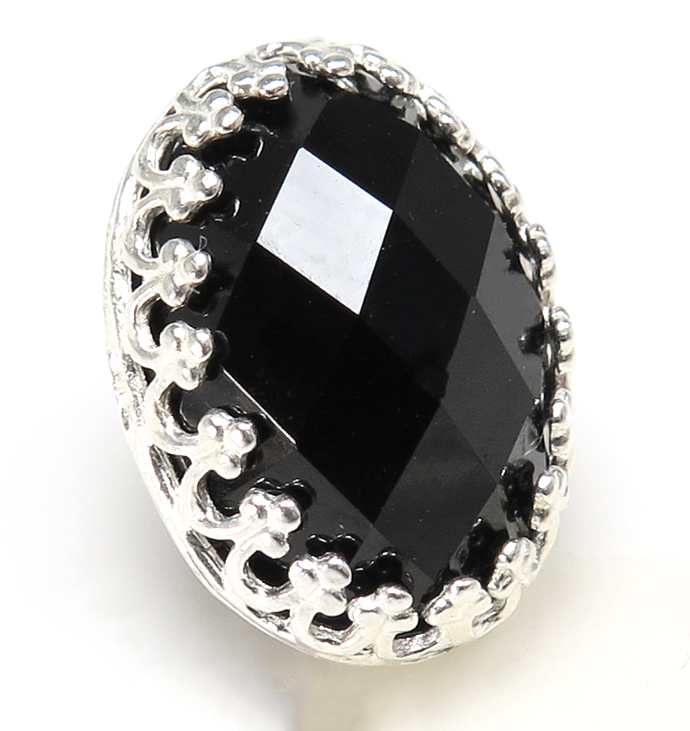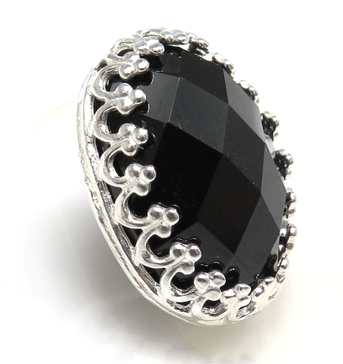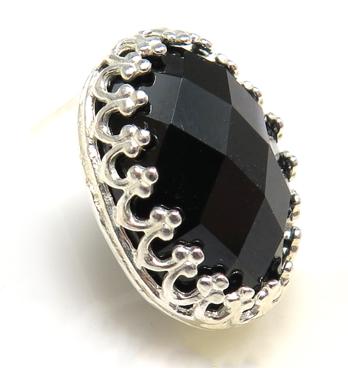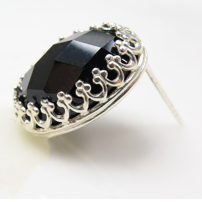 ブラックオニキスピアス ポスト 14×10mm オーバル ベゼル クラウン 真鍮 シルバーカラー1個(片耳) です。