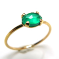 14kgf天然石リング(指輪)グリーンオニキス 6×4mm(4本爪カボション/オーバル・ローズカット)ゴールドフィルド(1個)です。