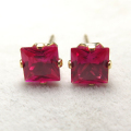 【品名】 ルビー合成石「ゴールドフィルド(14kgf)」5mmスクエア4本爪・スタッドピアス(立て爪ピアス) 【材質】 14Kゴールドフィルド【14/20K】 ・ルビー「合成コランダム/火炎溶融法(ベルヌーイ法)」 /5mm ・ポストの太さ:約0.7mm ・刻印:14KGF