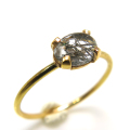 14kgf天然石リング(指輪)ブラックルチルクオーツ カボションカット 6×4mm(4本爪カボション/オーバル)ゴールドフィルド(1個)です。