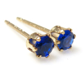 スピネル ピアス 合成石(ブルーカラー) 14kgf 3mmラウンド6本爪・スタッドピアス(立て爪ピアス)1ペアです。