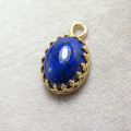 天然石ラピスラズリ<12月誕生石>・ペンダントクラウン(ベゼルセッティング/カボション)(オーバル・10×8mm)(真鍮ブラス・ゴールドカラー)(5個)