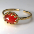 天然石指輪 レッドオニキス ローズカット ハンマードリング(カボションオーバル横8×6mm)(真鍮ブラス・ゴールドカラー)(1個)です。