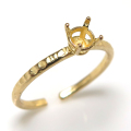指輪 空枠 リング ラウンド 石枠 4本爪 ハンマード 4mm (真鍮ブラス・ゴールドカラー)10個です。