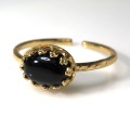 天然石指輪 ブラックオニキス ハンマードリング(カボションオーバル横8×6mm)(真鍮ブラス・ゴールドカラー)(1個)です。