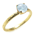 カルセドニー 指輪 リング アクアブルー 天然石 ハンマードリング ファセットカット(4本爪 ラウンド 5mm)真鍮ブラス・ゴールドカラーです。