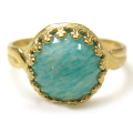 アマゾナイト リング 指輪 天然石 カボション 10mm ラウンド真鍮ゴールドカラー 1個です。