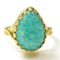 アマゾナイト リング 指輪 天然石 カボション ペアシェイプ 14×10mm 真鍮ゴールドカラー 1個です。