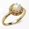 天然石エチオピアンオパール<10月誕生石>指輪リング・ロープ(ベゼルカボションラウンド・6mm)真鍮ブラス・ゴールドカラーです。