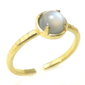 グレームーンストーン 天然石指輪 ハンマードリング(4本爪 カボション ラウンド 6mm)真鍮ブラス・ゴールドカラー です。