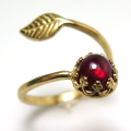 天然石ルビー 鉛ガラス充填<7月誕生石>指輪リング・リーフ(ベゼルカボションラウンド・6mm)(真鍮ブラス・ゴールドカラー)(1個)です。
