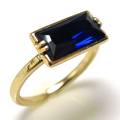 ブルーサファイア 指輪 合成石 リング(バゲット10×5mm)(真鍮ブラス・ゴールドカラー)です。