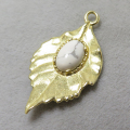 天然石ハウライトチャーム リーフ(4本爪/カボション)(オーバル7×5mm)(真鍮ブラス・ゴールドカラー)(1個)です。