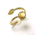 天然石シトリン<11月誕生石>指輪リング・リーフ(ベゼルカボションラウンド・6mm)(真鍮ブラス・ゴールドカラー)(1個) です。