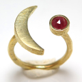 三日月 ムーン リング 惑星 指輪 天然石ルビー ローズカット 4mm 真鍮ブラス・ゴールドカラー(1個)です。