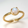 天然石リング 指輪 レインボームーンストーン ハンマードリング(4本爪 カボション ラウンド 5mm)(真鍮ブラス・ゴールドカラー)です。
