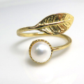 淡水パール指輪リング(真珠)リーフ(カボションラウンド・6mm)(真鍮ブラス・ゴールドカラー)(1個)です。