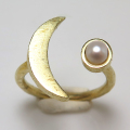 三日月 リング 惑星 指輪 パール(淡水真珠)4mm 真鍮ブラス・ゴールドカラー(1個)です。