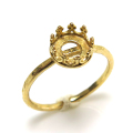 ハンマード指輪リング空枠クラウン(ベゼルセッティング/カボション用)(ラウンド 6mm)(真鍮ブラス・ゴールドカラー)(10個)です。
