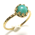 ミルキーグリーン エメラルド指輪 リング 天然石<5月誕生石>ハンマード ラウンド6mm 真鍮ブラス・ゴールドカラー/1個です。