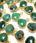 エメラルド 天然石チャーム・ペンダントトップ ハート マロン12×9mm シルバー925 18金ゴールドプレーテッド ベゼル (5個)です。