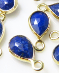 ラピスラズリ 天然石チャーム・ペンダントトップ ドロップ ペアシェイプ 9×5mm シルバー925 18金ゴールドプレーテッド ベゼル (5個)です。