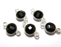 SV925/コネクター/天然石ブラックオニキス/ラウンド 8mm(ベゼルセッティング)(25個)
