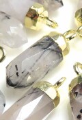 ブラックルチルクオーツ 天然石 ポイント ドロップ チャーム・ペンダントトップ 16mm×5mm 18金ゴールドプレーテッド(1個)です。