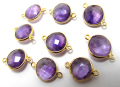 【品名】 ゴールドプレーテッド・SV925/【コネクター】/天然石アメジスト/ラウンド8mm(ベゼルセッティング) 【材質】 ゴールドプレーテッド・シルバー925 サイズ:直径/8mm
