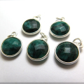 SV925/ペンダントトップ/天然石エメラルド<5月誕生石>(染)/ラウンド 11mm(ベゼルセッティング)(25個)です。