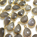 グレームーンストーン 天然石チャーム・ペンダントトップ ドロップ ペアシェイプ 13×8mm シルバー925 18金ゴールドプレーテッド ベゼル (5個)です。