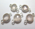 SV925/コネクター/天然石ローズクオーツ<10月誕生石>/ラウンド 8mm(ベゼルセッティング)(25個)