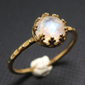 レインボームーンストーン 指輪 リング ローズカット 天然石<6月誕生石>ハンマード ラウンド6mm 真鍮ブラス・ゴールドカラー/1個です。