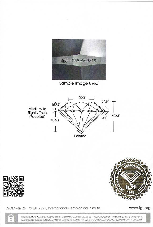 IGI鑑定書番号の刻印は、特定のIGI鑑定書のデータとルースを紐付けしたセキュリティ機能です。