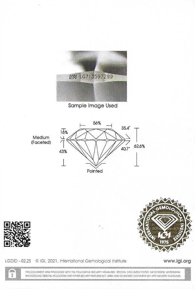 IGI鑑定書番号の刻印は、特定のIGI鑑定書のデータとルースを紐付けしたセキュリティ機能です。