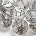 天然石ルース(裸石)トルマリンインクオーツ・ブラックルチルクオーツ/ラウンドボール片穴 ビーズ【4mm】ミラーボール チェッカーカット(25個) です。
