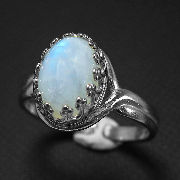 レインボームーンストーンリング 指輪(カボションオーバル10×8mm)(真鍮ブラス・銀古美) です。