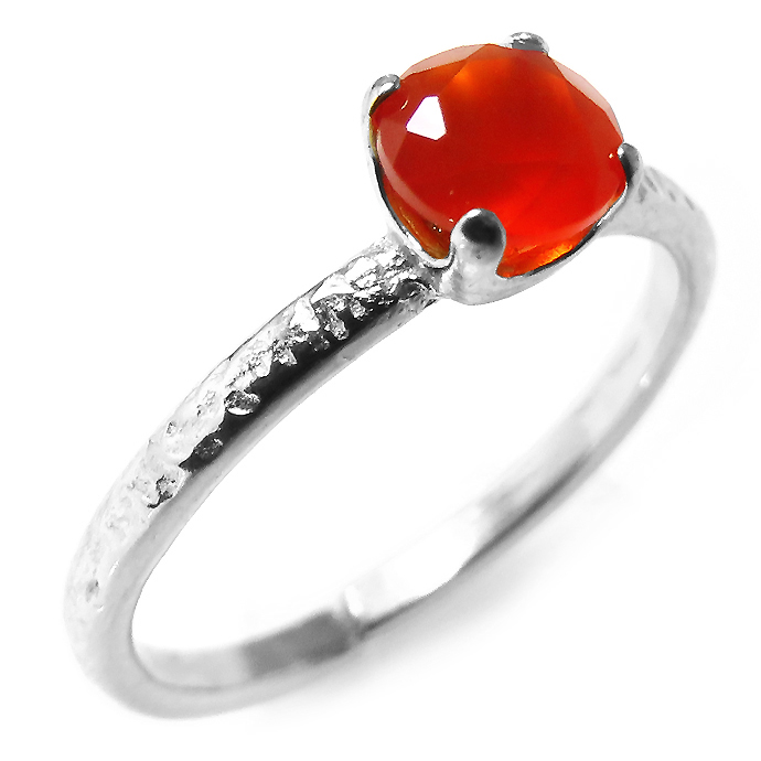 カーネリアン シルバーリング 指輪 天然 ハンマード(4本爪 ラウンド 5mm)真鍮ブラス・シルバーカラーです。