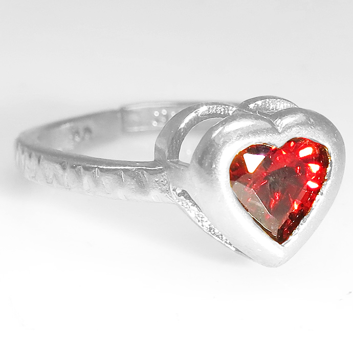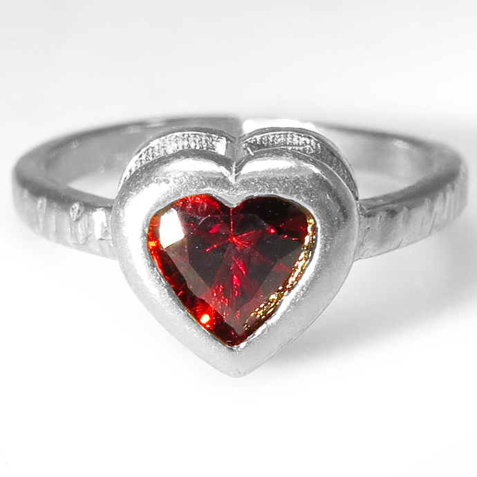 ガーネット 指輪 リング 天然石 ハート 6mm 真鍮ブラス・シルバーカラー 1個です。