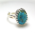 天然石ターコイズ<12月誕生石>(アリゾナ)指輪リング(カボションオーバル・14×10mm)(真鍮ブラス・シルバープレーテッド)(1個)