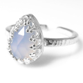 カルセドニー リング指輪 天然石(カボション ローズカット ペアシェイプ・10×7mm)(真鍮ブラス・シルバーカラー)です。